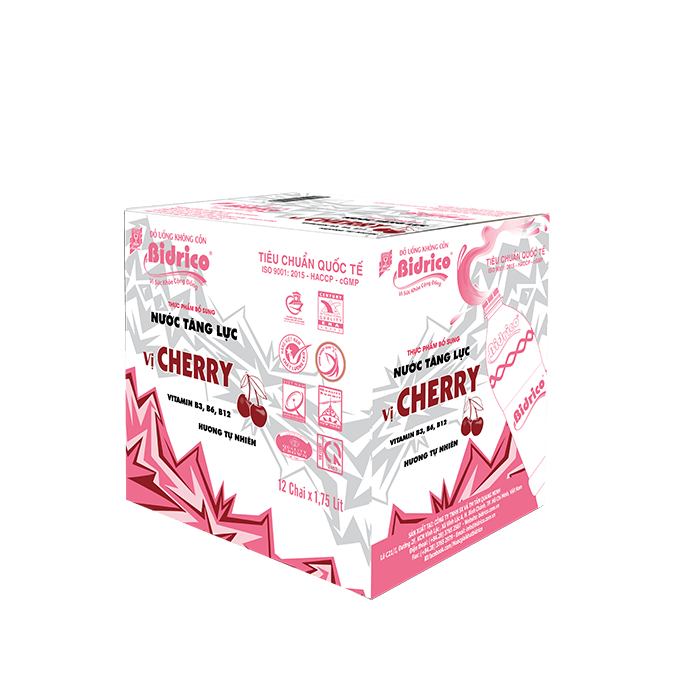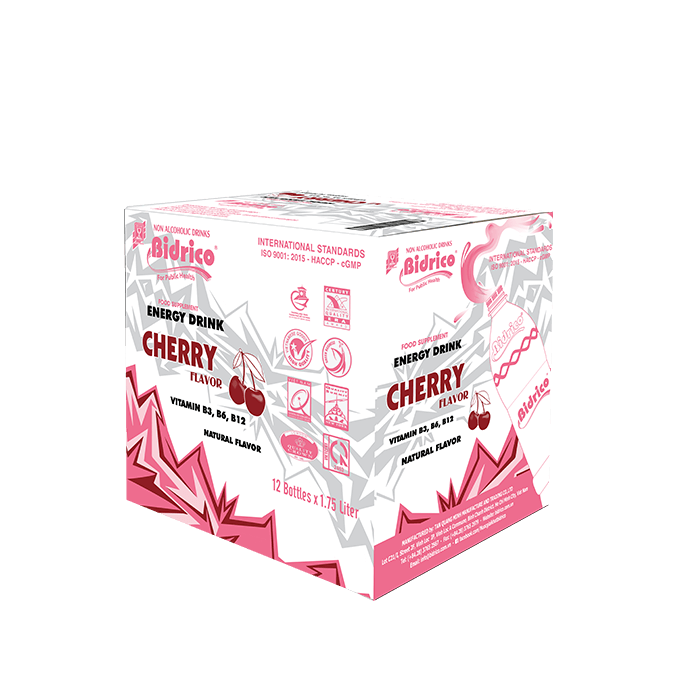 ContactBidrico energy drink Cherry flavor 1.75l bottle brings a new and strange feeling, bursts into energy from the delicious and fresh taste of vibrant red cherries. Fresh cherries, moderately sweet and sour are combined energy including taurine, vitamins B3, B6, B12. Which is the perfect choice for active young people who need to replenish energy, improve concentration and increase performance at work or during exercise.