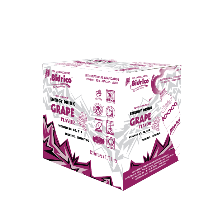 ContactBidrico energy drink grape flavor 1.75l bottle is the perfect choice to quickly replenish energy. The combination of juicy, sweet, slightly sour grape with ingredients such as vitamins B3, B6, B12, taurine help to keep the mind alert, restore physical strength when tired or needing deep concentration.