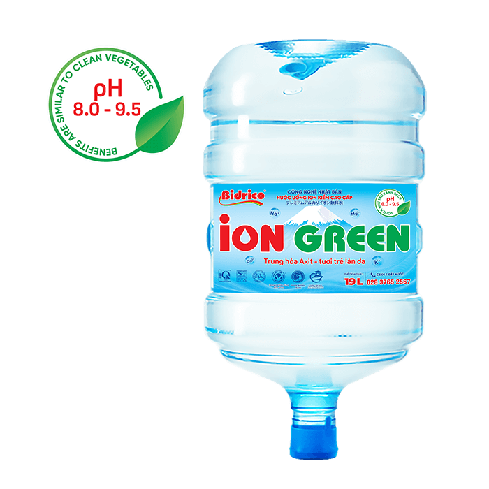 ContactION GREEN premium alkaline ionized drinking water 19l bottle up is created from electrolysis technology, which splits water into ions H+ and OH- and it has natural alkaline with pH from 8.0 – 9.5. The product is manufactured on an automatic, closed lines, integrating modern electrolysis technology from Japan.