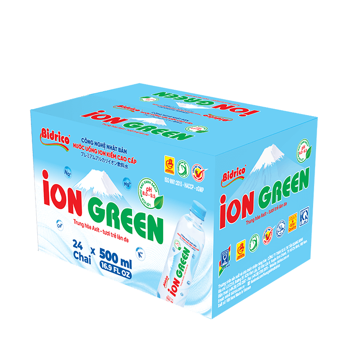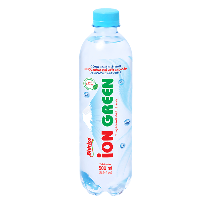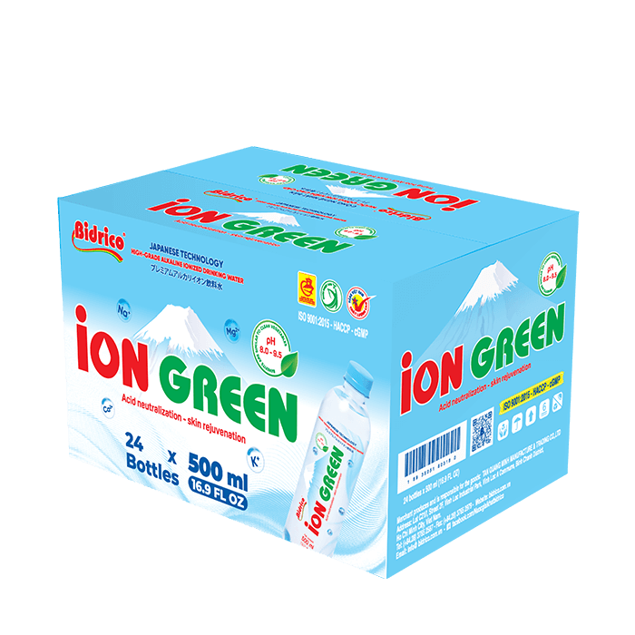 ContactION GREEN premium alkaline ionized drinking water 500ml bottle is created from electrolysis technology, which splits water into ions H+ and OH- and it has natural alkaline with pH from 8.0 – 9.5. The product is manufactured on an automatic, closed lines, integrating modern electrolysis technology from Japan.