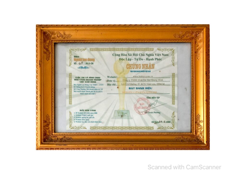 Công ty TNHH SX & TM Tân Quang Minh (Bidrico) nhận “Giải thưởng vàng ngôi sao quốc tế chất lượng dẫn đầu”